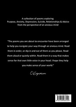 ​​This debut poetry collection ‘Memoirs of an Anxious Mind’ is my first solo publication. It includes a collection of poems exploring Purpose, Anxiety, Depression, Suicide, Relationships and Advice from the perspective of an anxious mind.